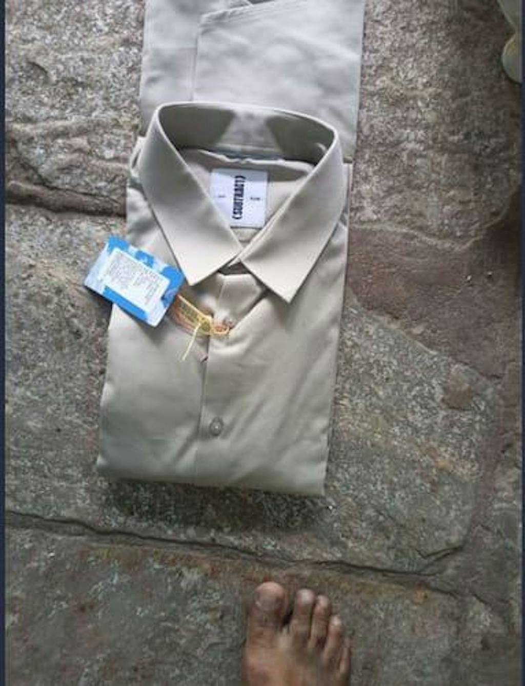 The shirt is slightly but yet very evidently different in shade. I hv uploaded the pic trying to adjust the colours of the pic to that of the shirt. Its short of khakhi grey or very a dusty grey with mud tint shade.